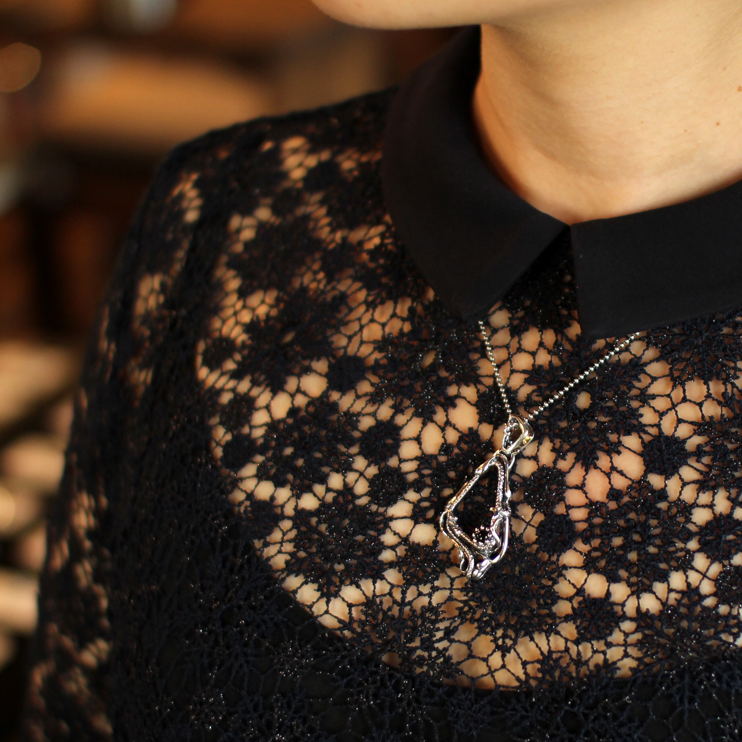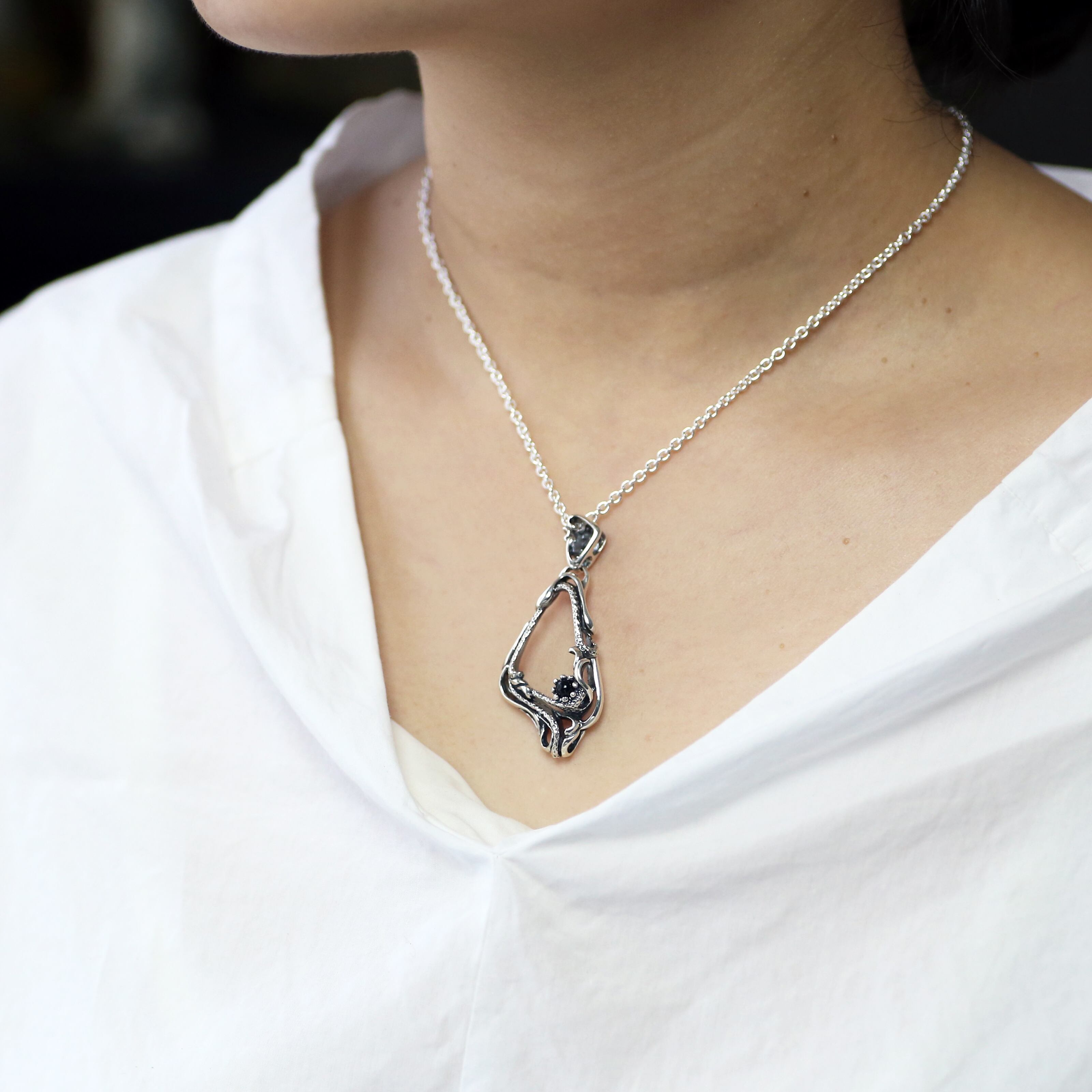 大胆なシルエットで切り抜かれたフレームペンダント。