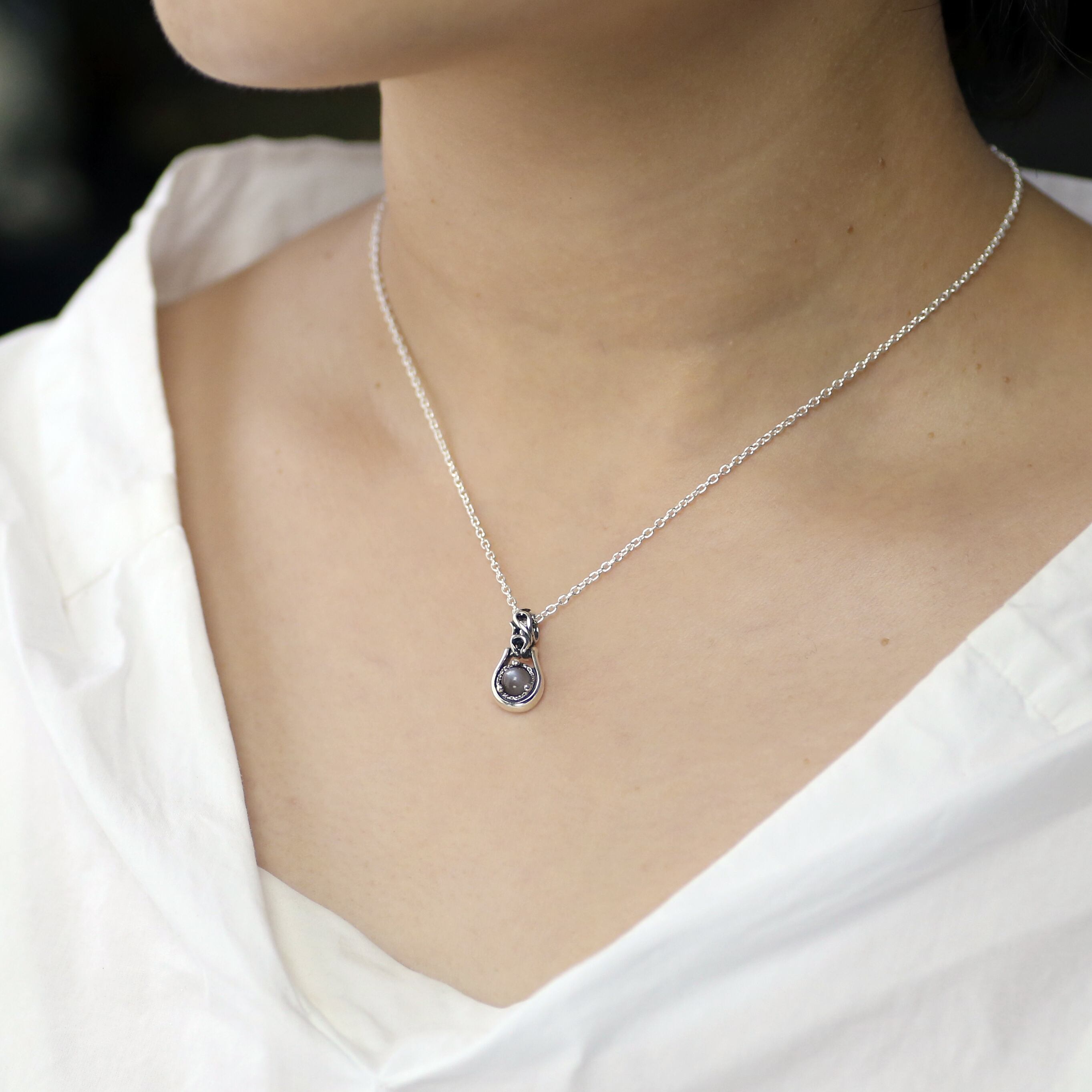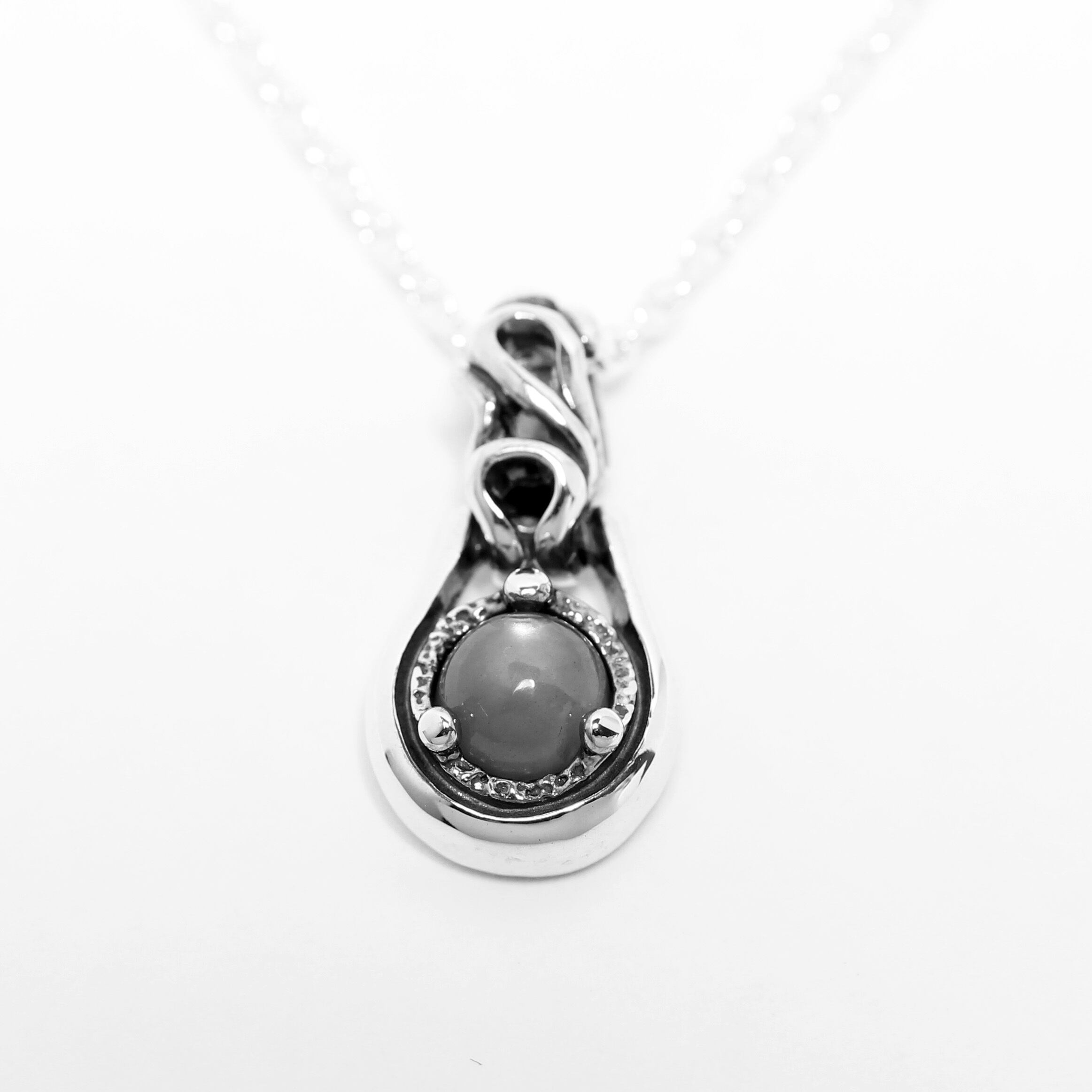 グレームーンストーンの潤いのある輝きが魅せるシンプルなペンダントトップ。