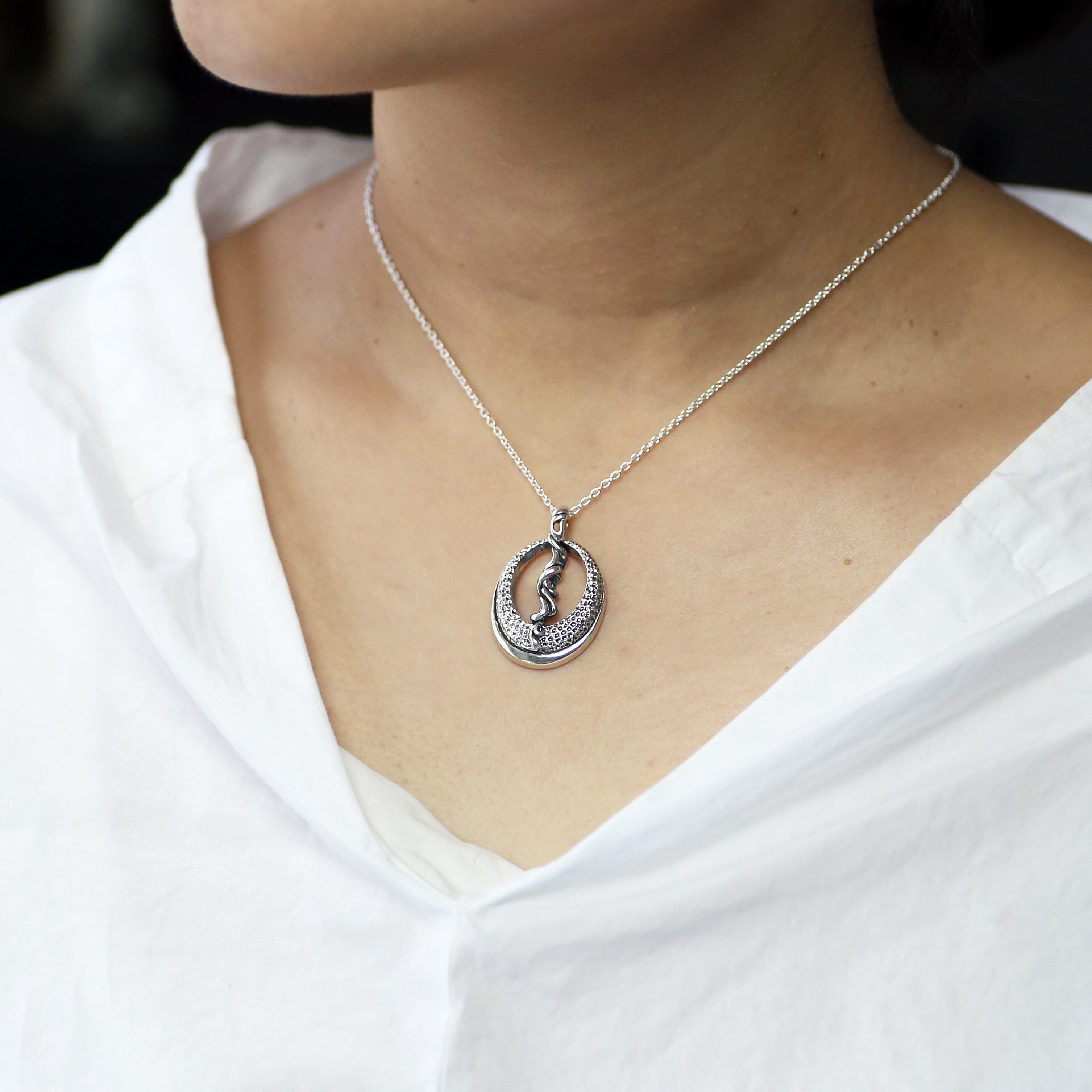 ぷっくりとしたオーバルペンダント。