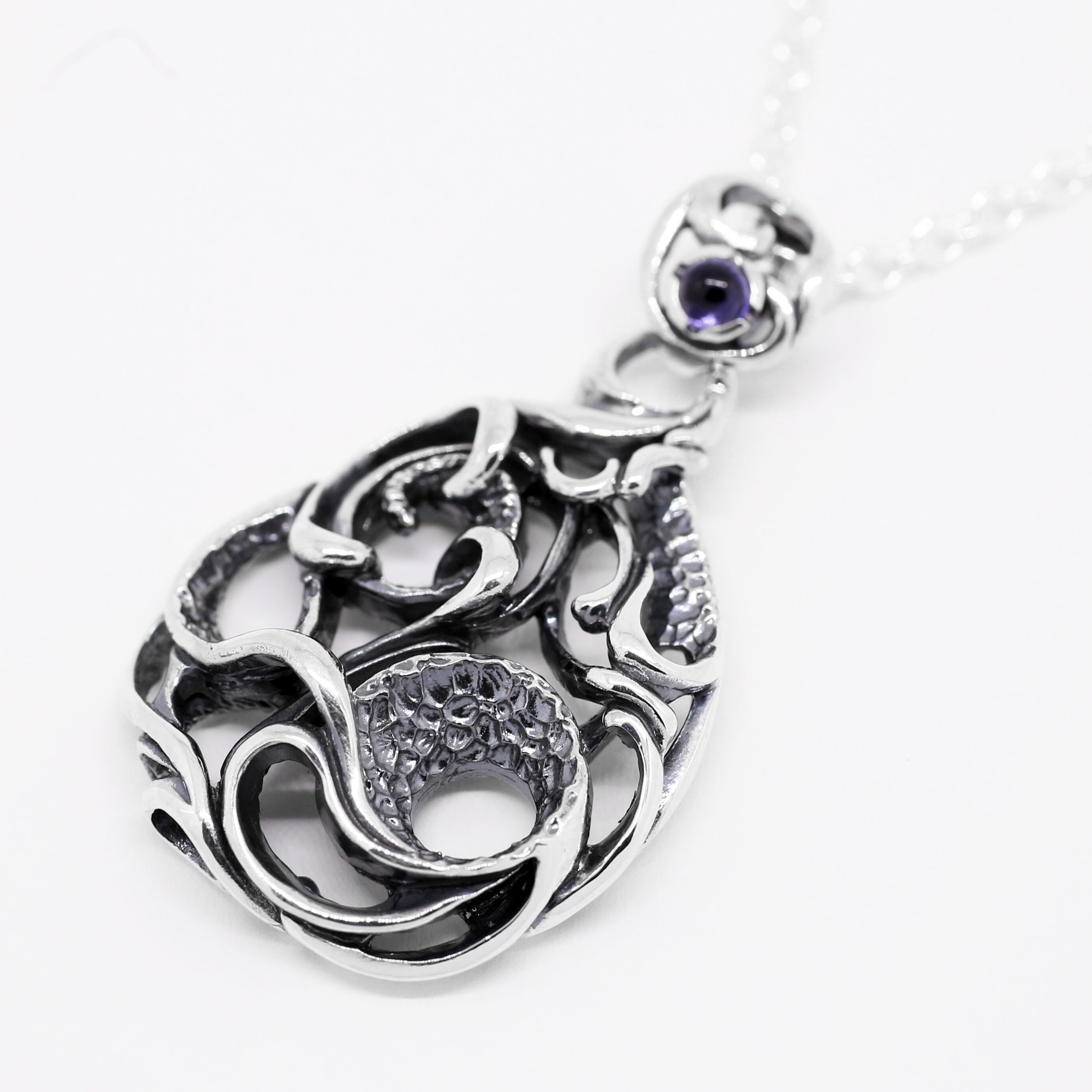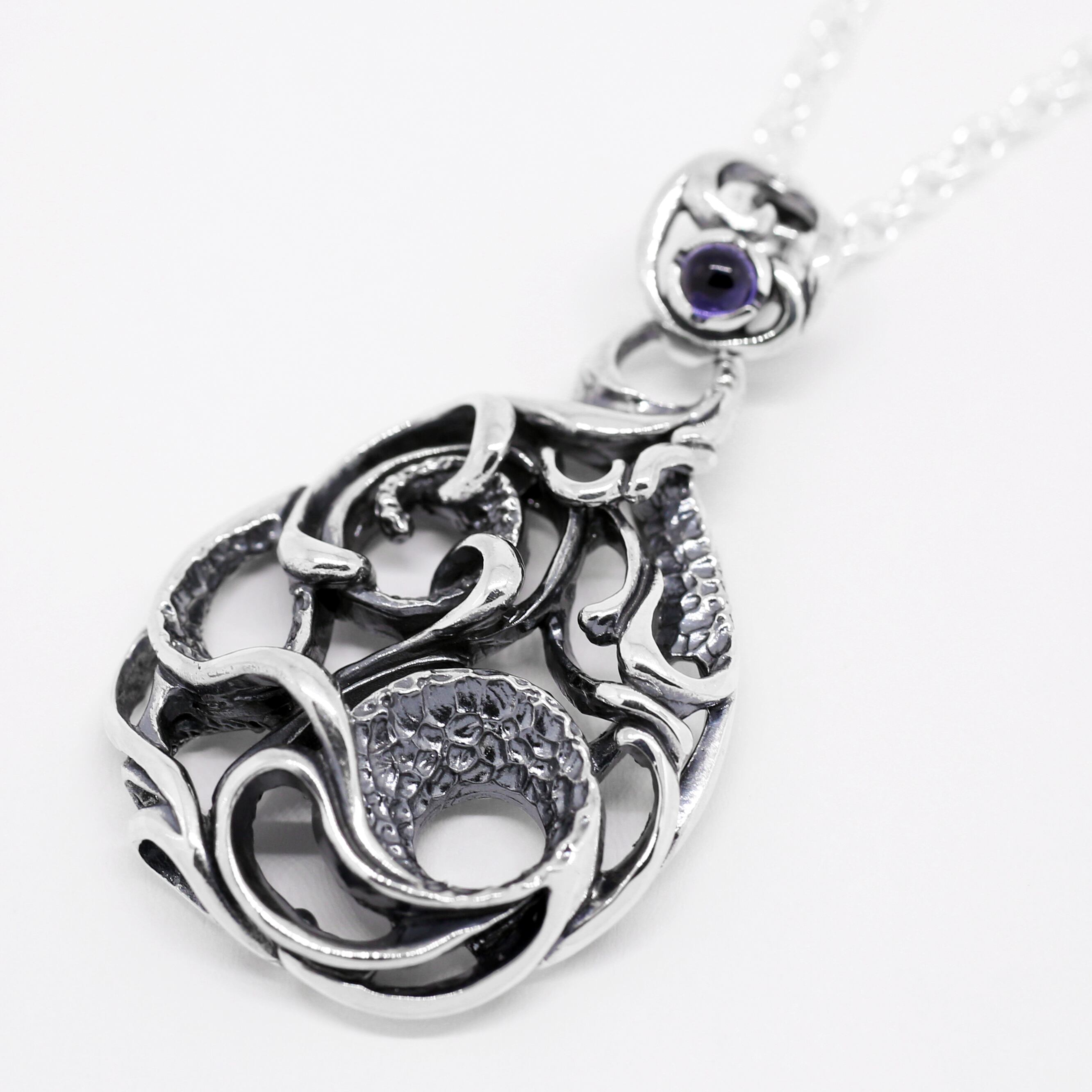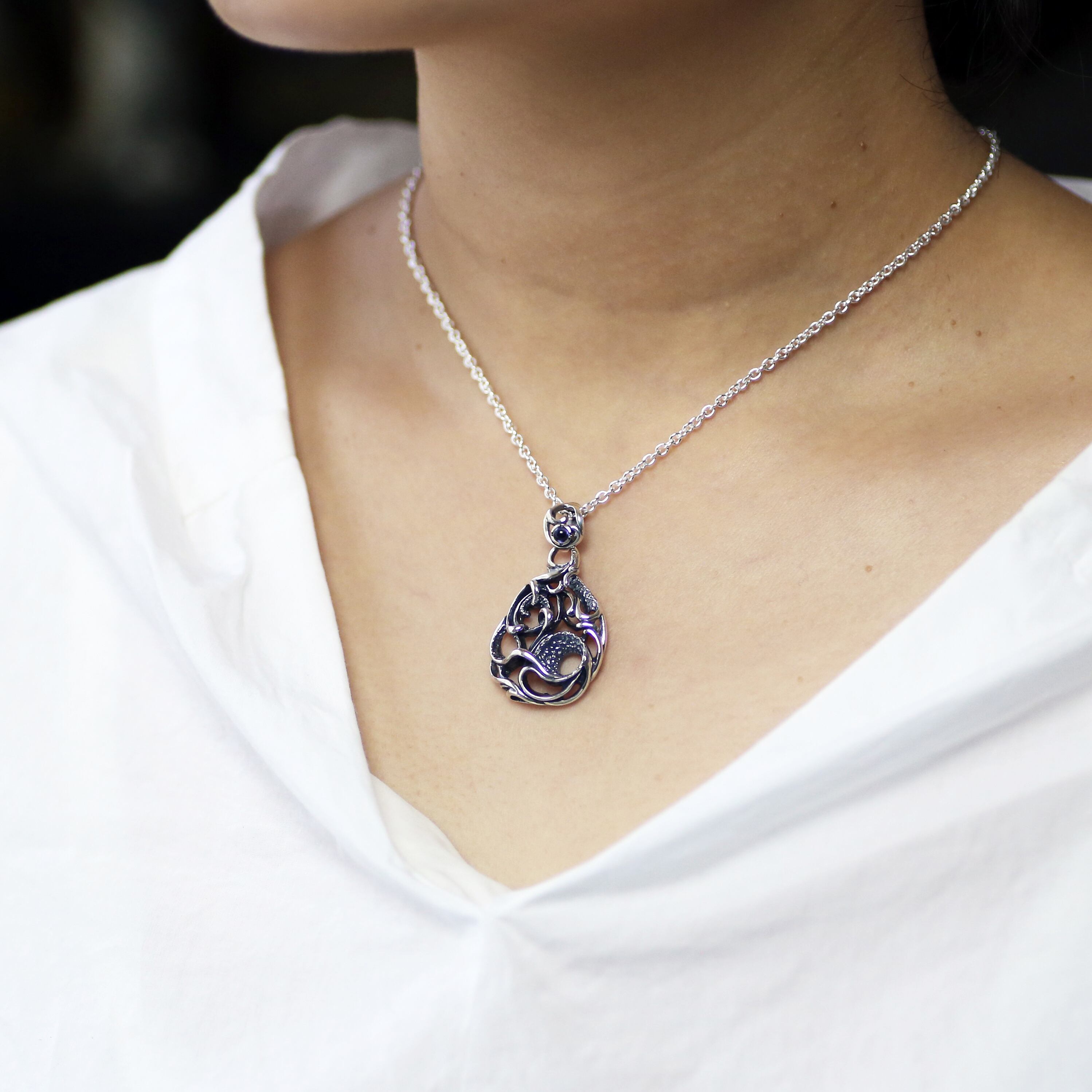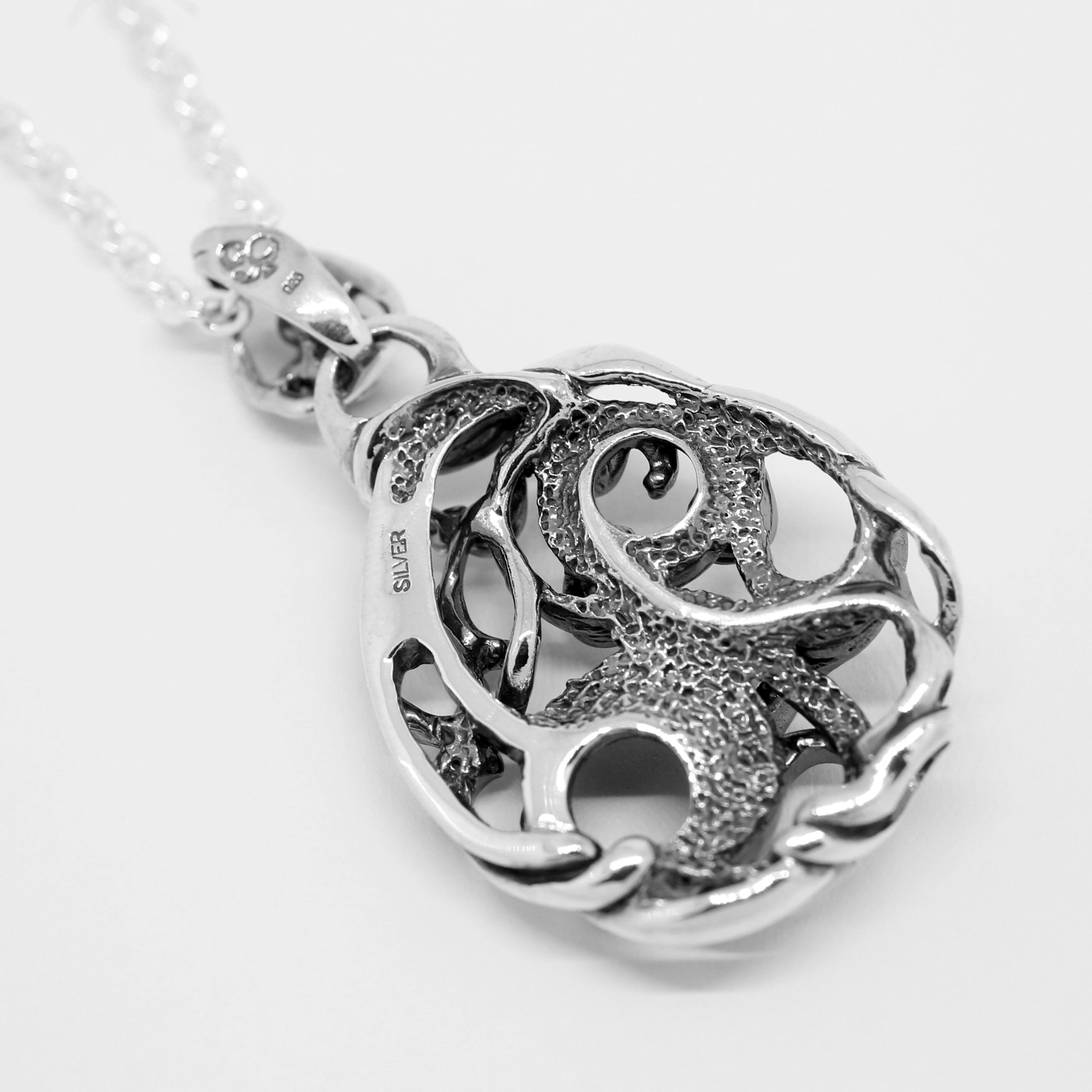 雫型で水の動きを閉じ込めたデザインのペンダントトップ。