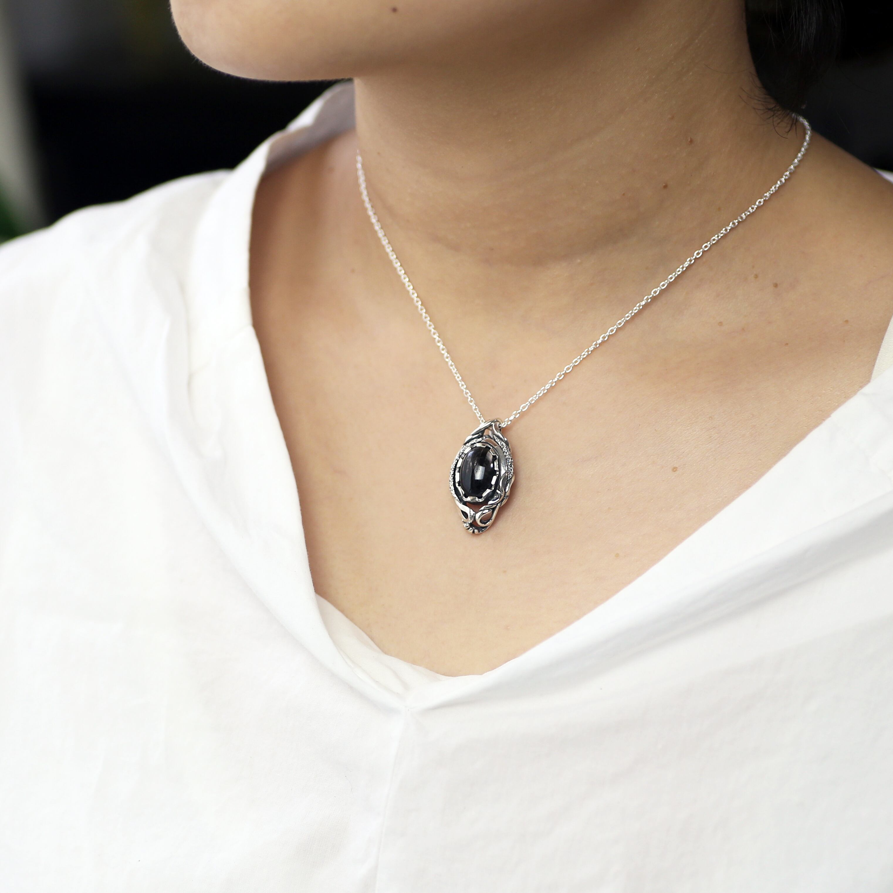 「天然石を魅せる」をテーマに派手すぎないシルエットの中にテクスチャーと透かしがバランスよく組み合わされたペンダントトップ。