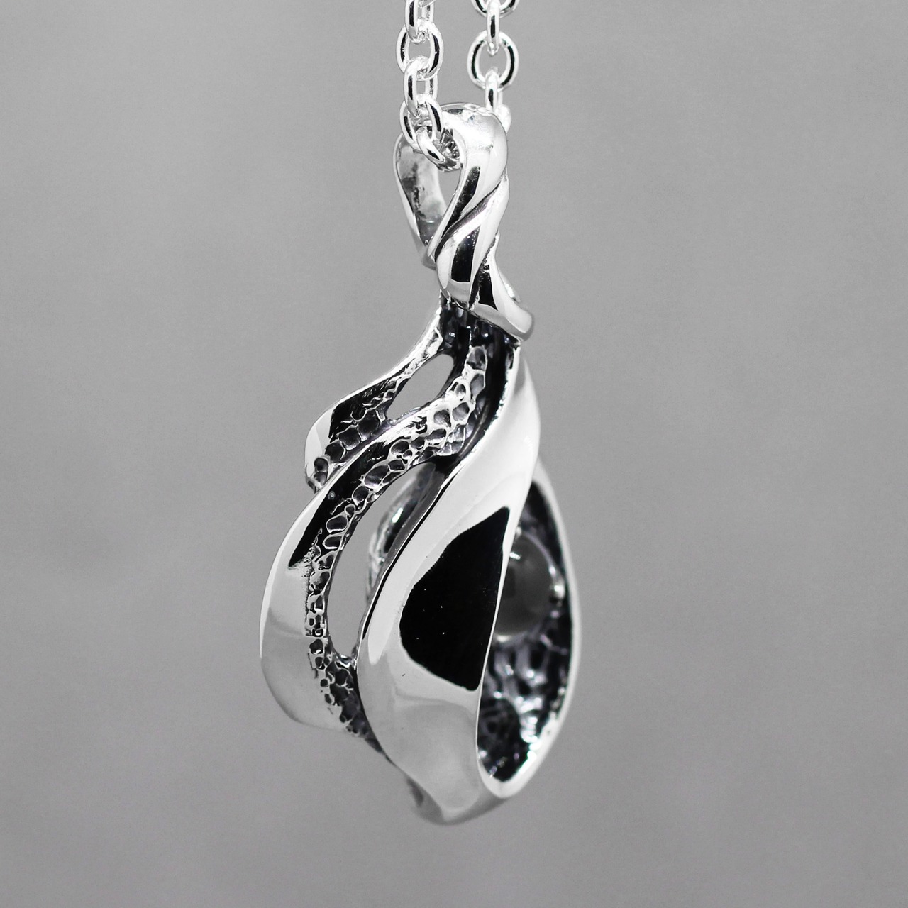 見え隠れするようにグレームーンストーンがセッティングされたペンダントトップ。