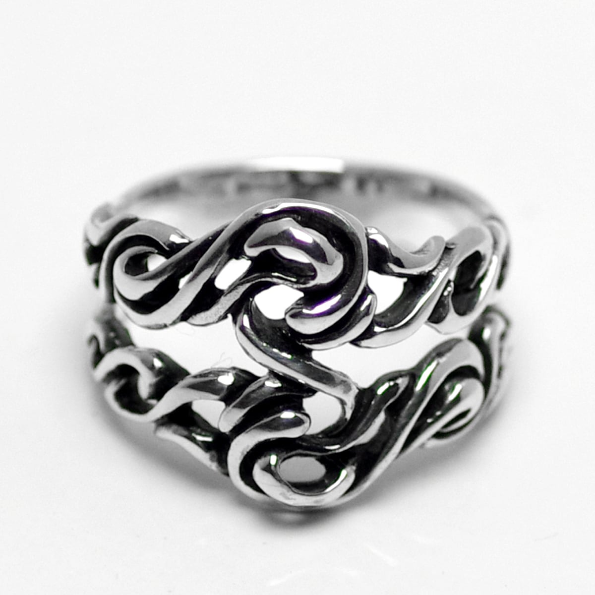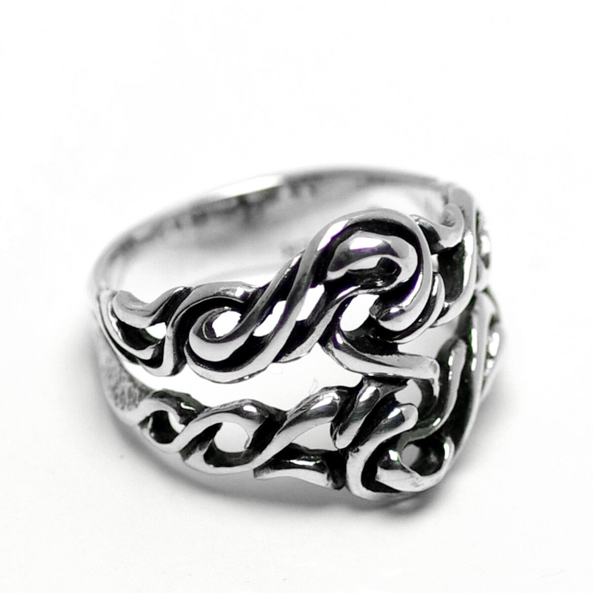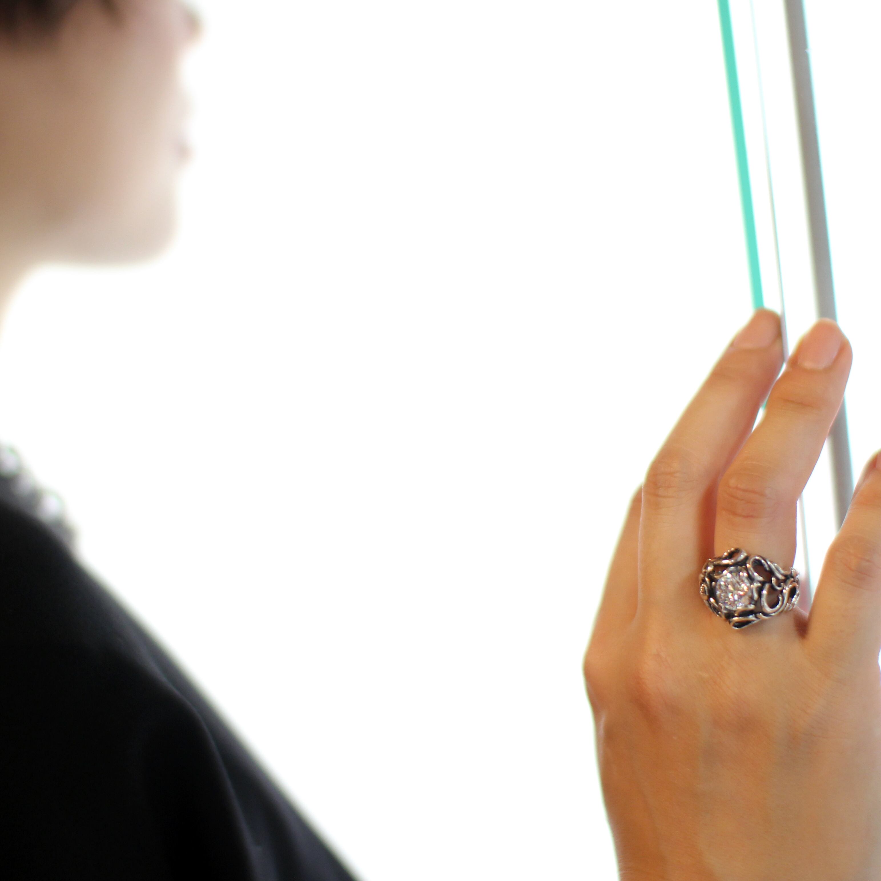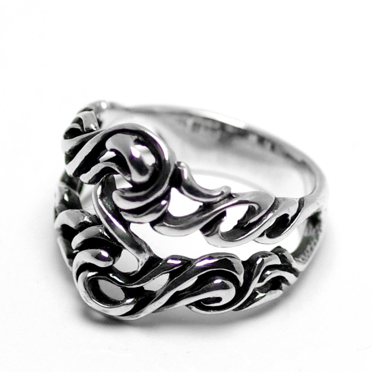 小ぶりだが高低差もあり自在にめぐる曲線がボリュームを魅せるリング。