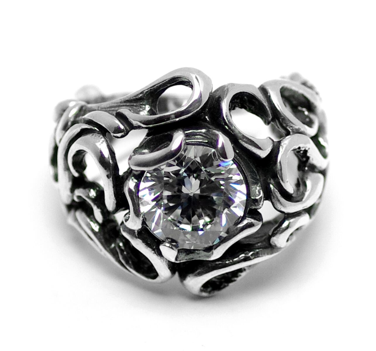 自由で自然な曲線とその中に埋め込まれるようにセッティングされた大粒なジルコニアで躍動感を表現。