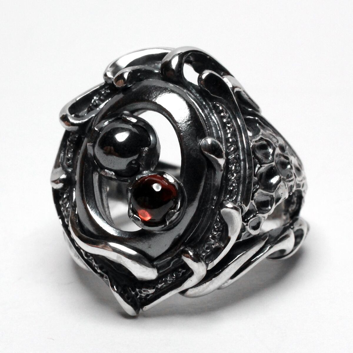 へマタイトのメタル感にガーネットがアクセントとなっている。