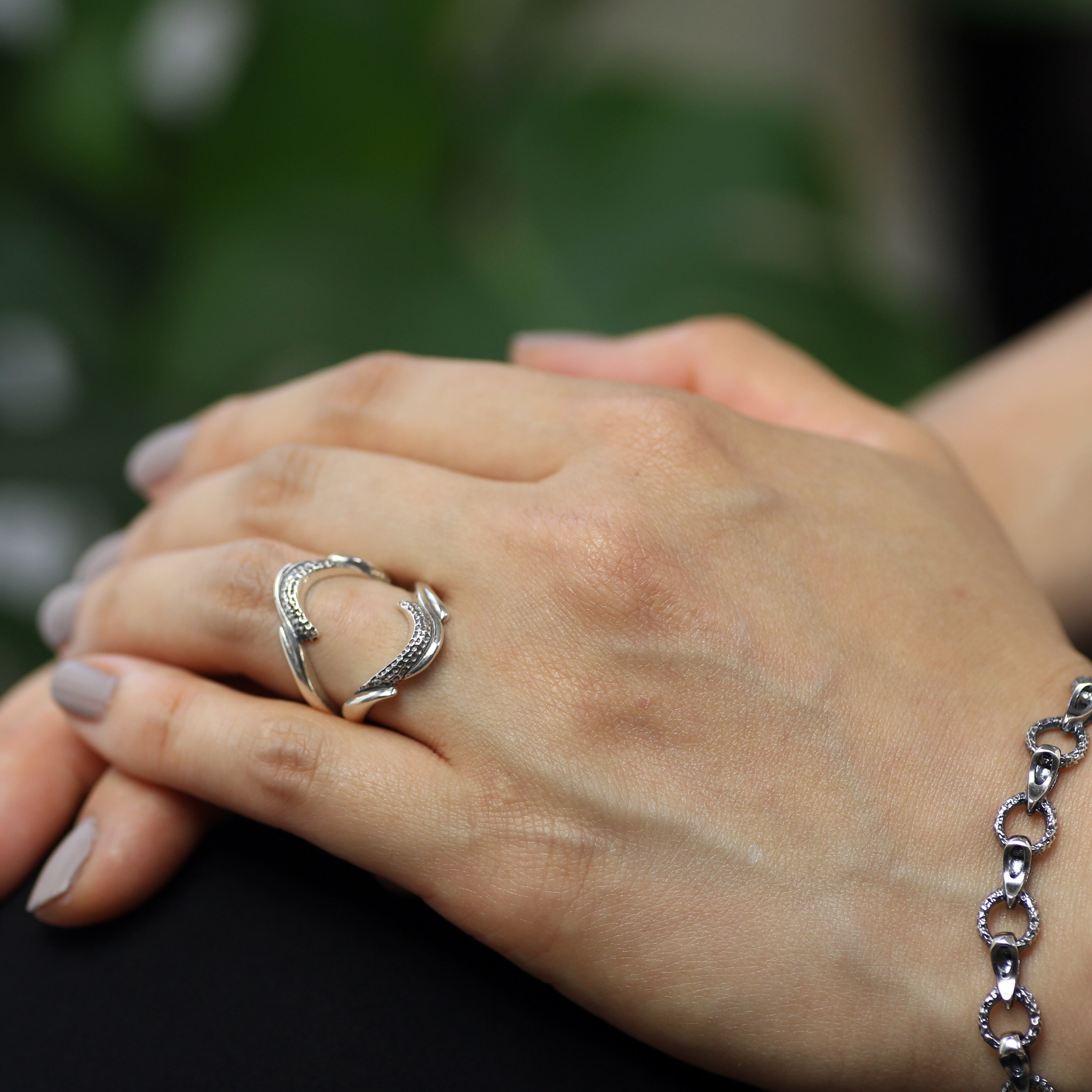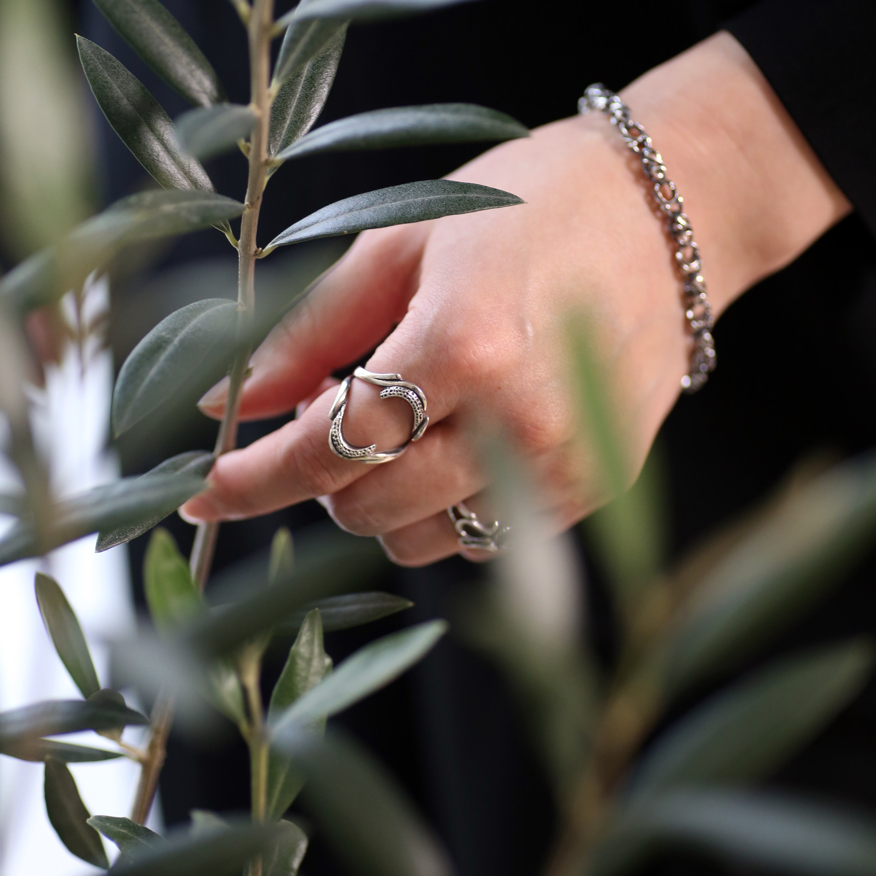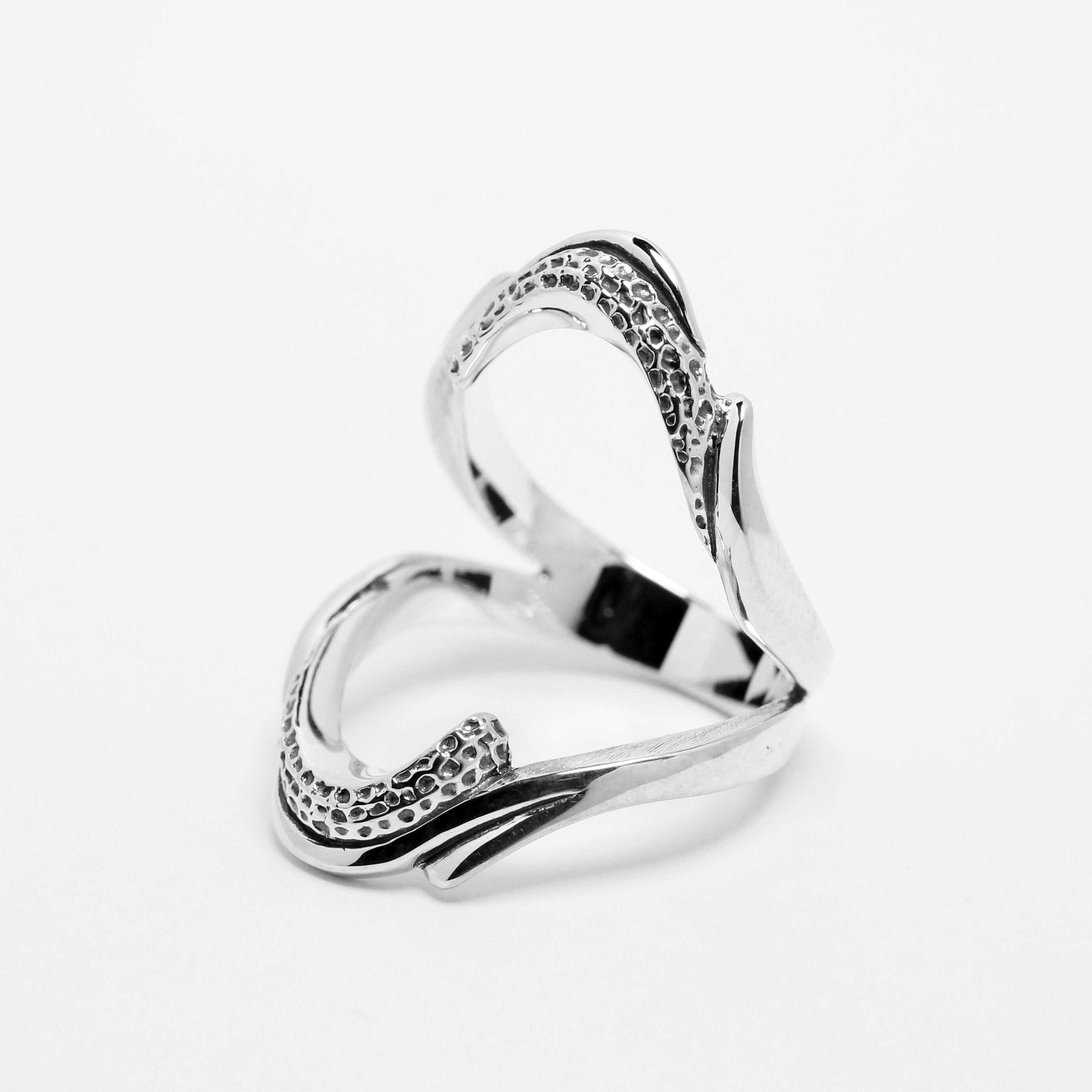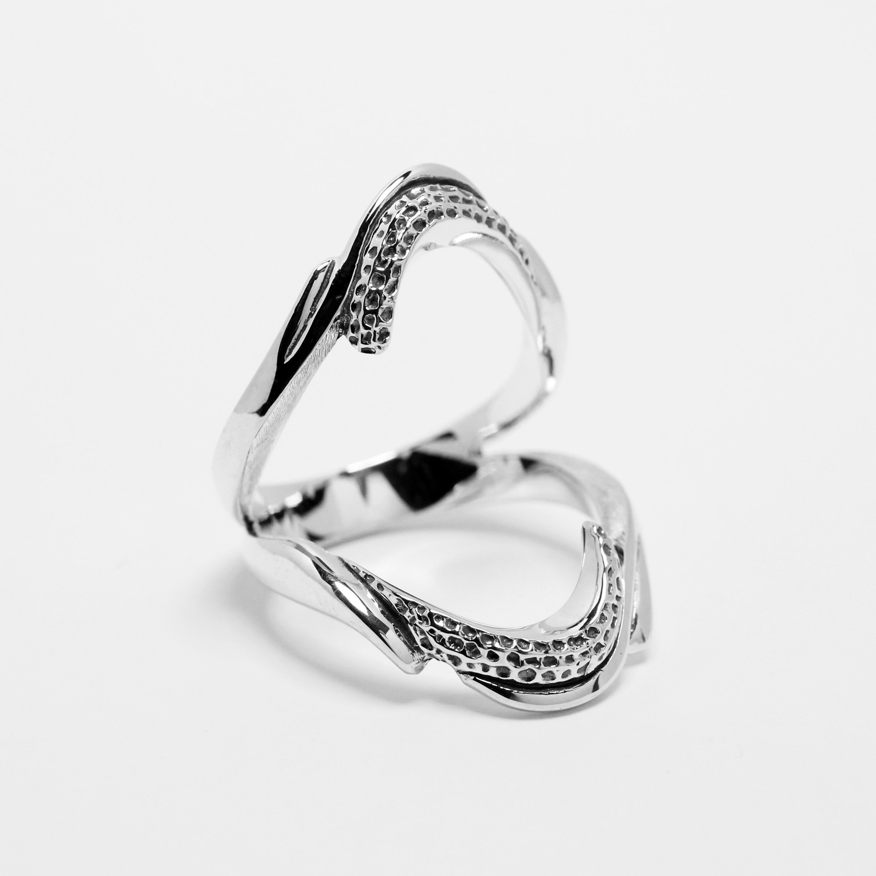 美しく魅せるVラインを反転させ二連に構成したリング。