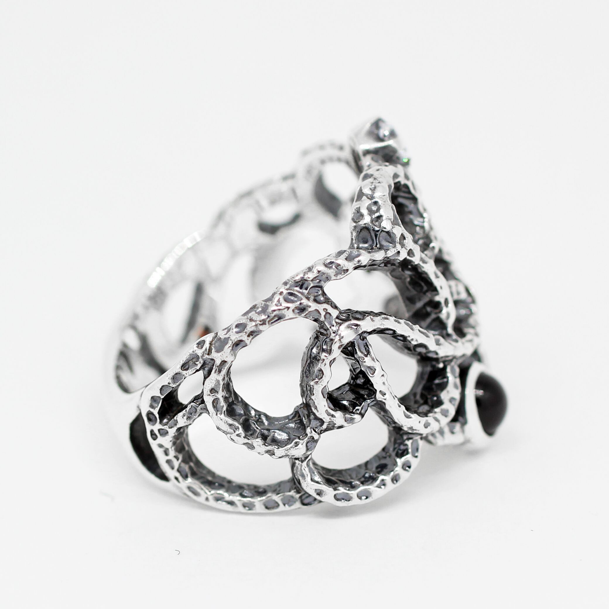 リング全体に施したテクスチャーラインワークで構成されたデザイン。