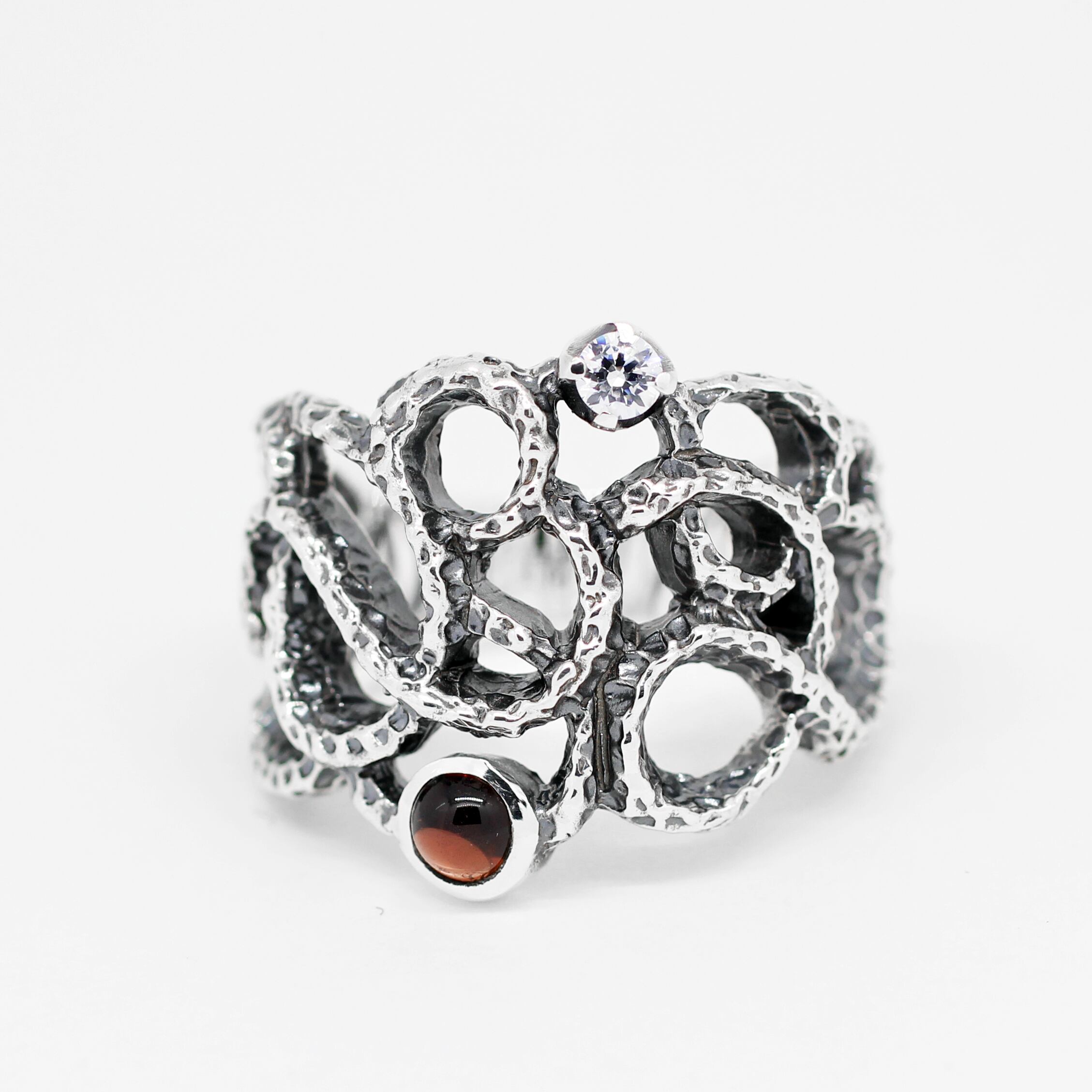 ポイントでセッティングした天然石とジルコニアの輝きがアクセントとなっている。