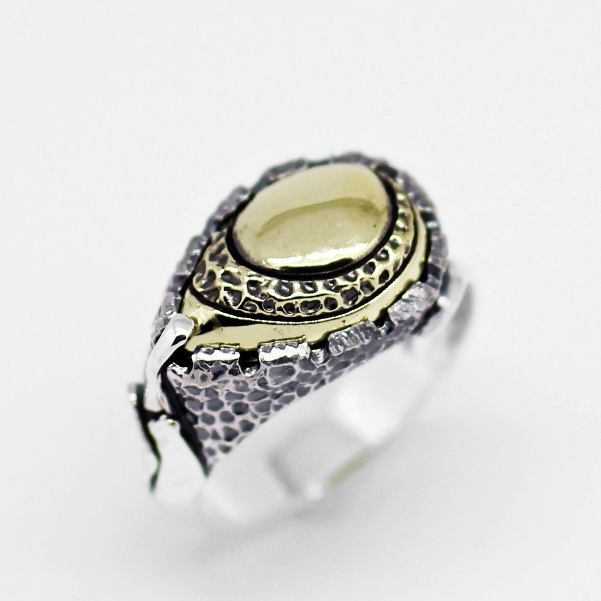 真鍮パーツにも流れとテクスチャーを施した遊びの効いた横向きリング。
