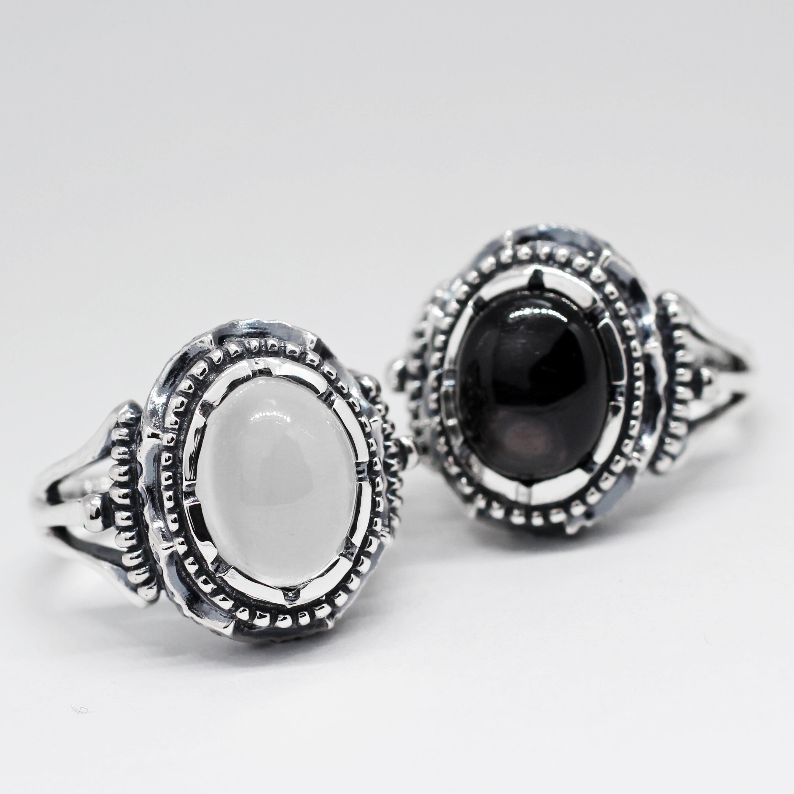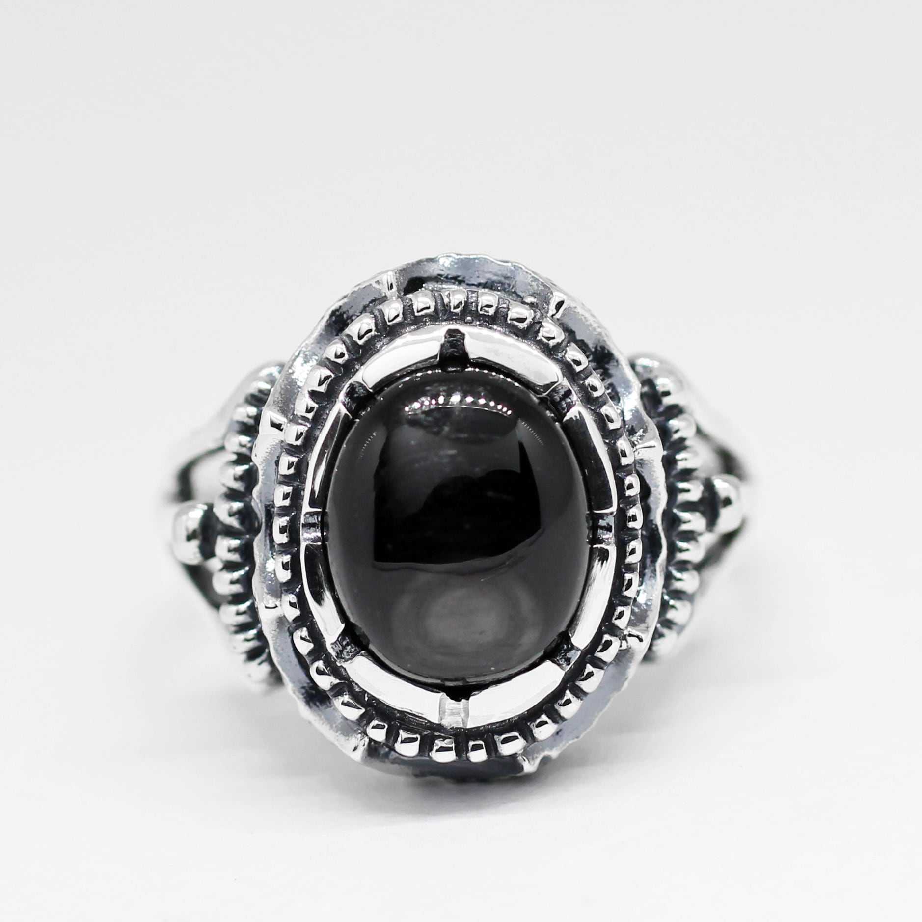 何層にも分けて見える構造の中にさりげない輝きのストーンが調和したアンティーク感漂う天然石のリング。
