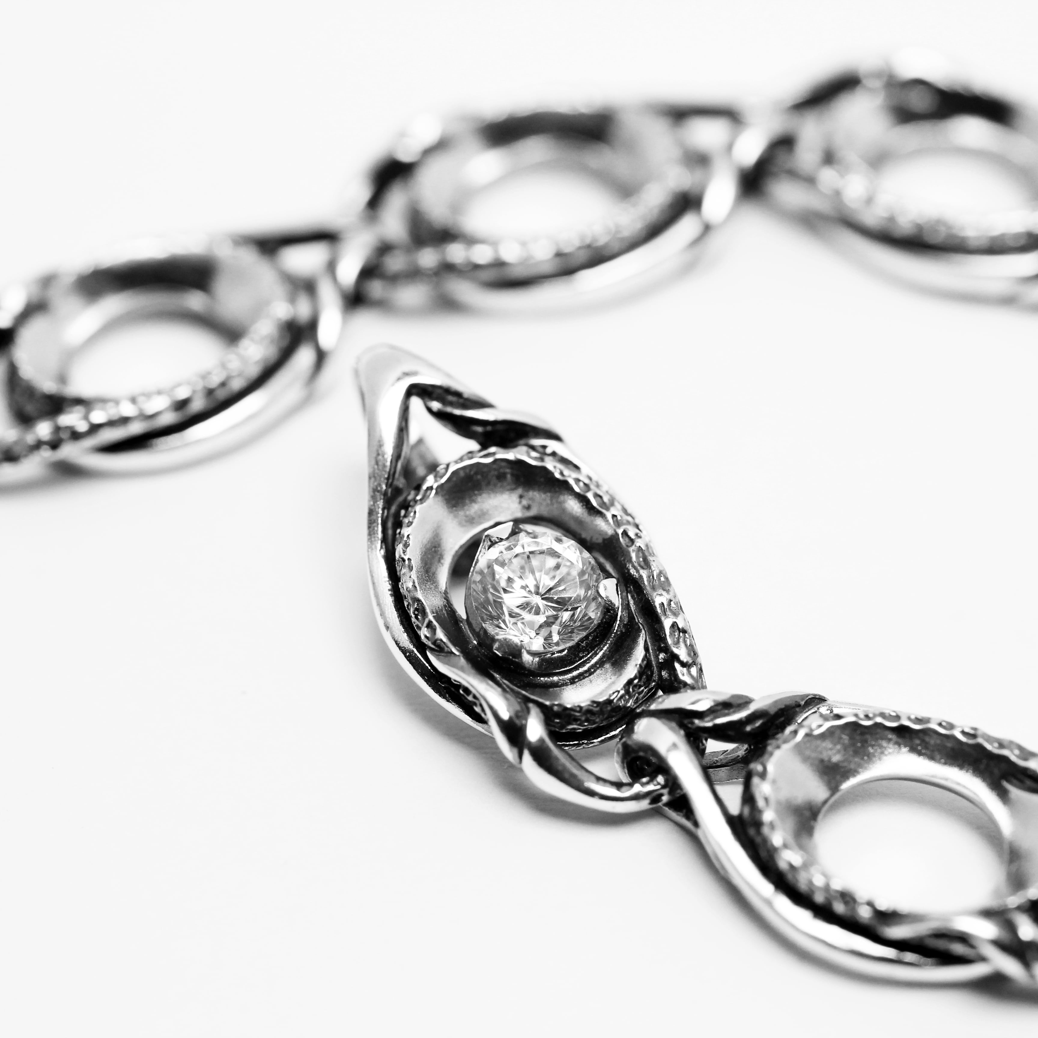 オーバル型のパーツを流れるようにつなぎ合わせたブレスレット。