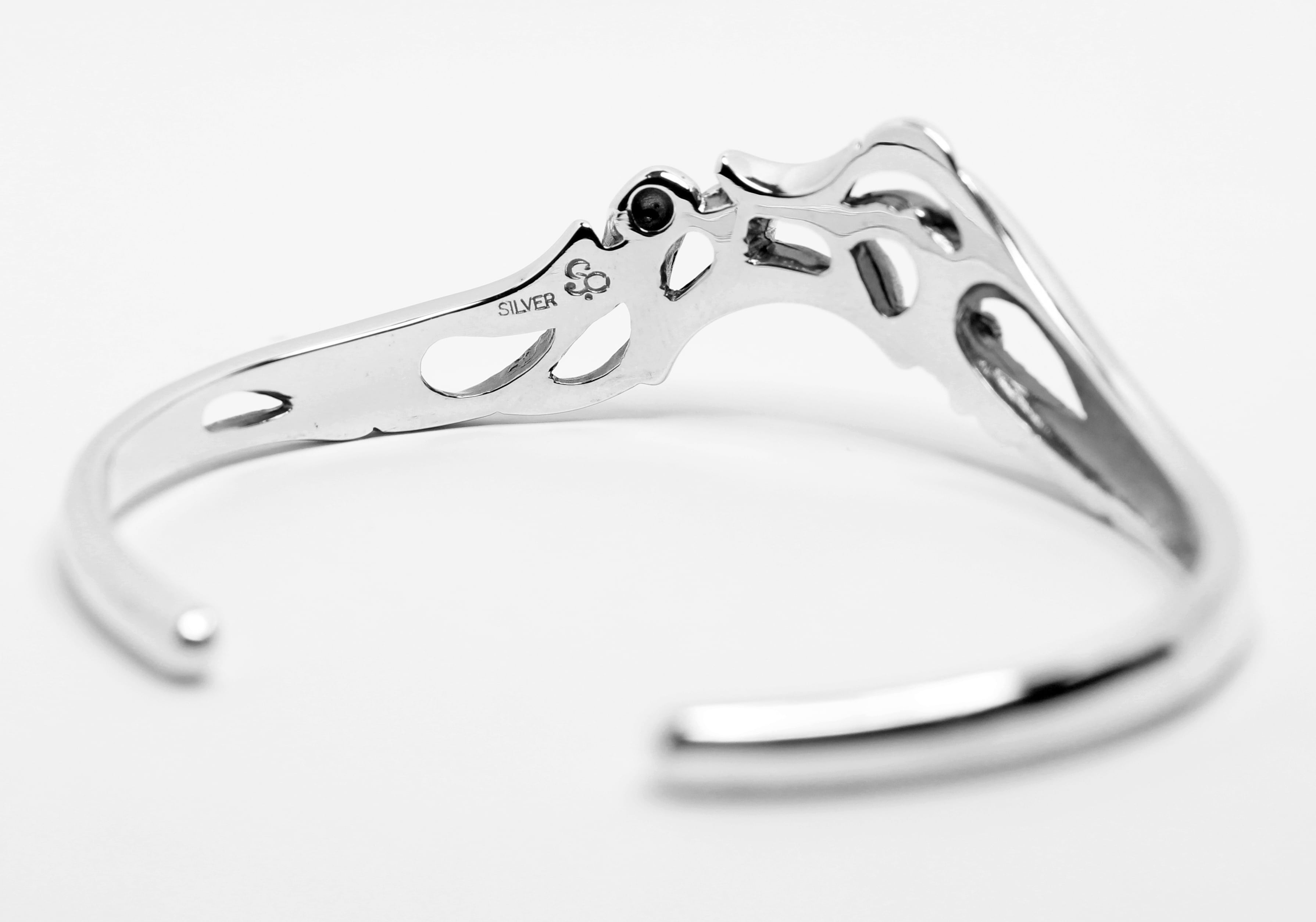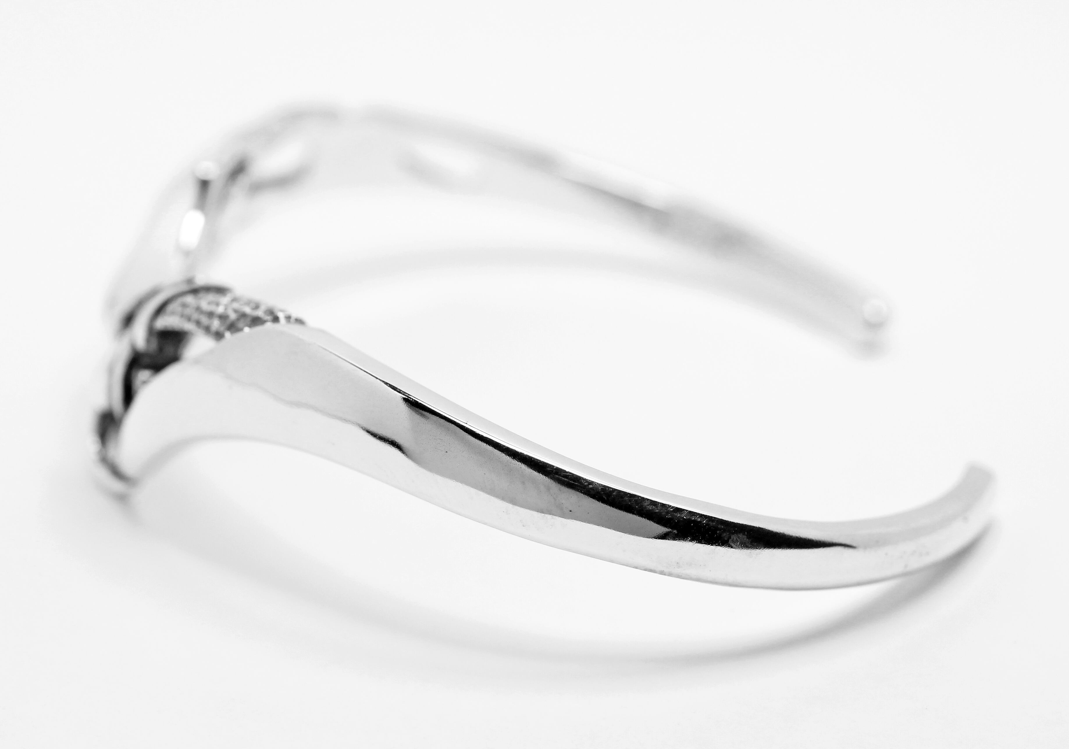 Vシルエットの中に鏡面と透かしの空間が融合した腕馴染みも良いバングル。