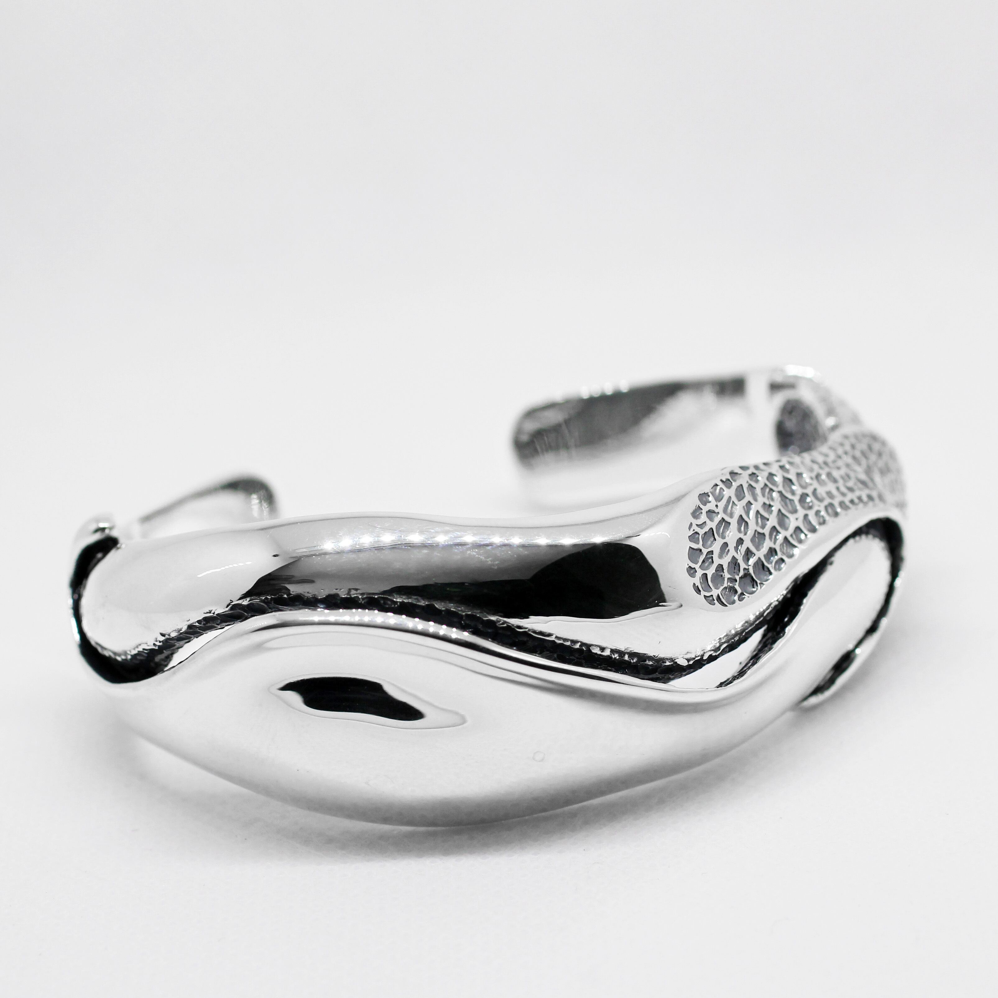 金属の輝きとシェルのもつ柔らかく力強い表情がシンプルながら存在感を放つ。