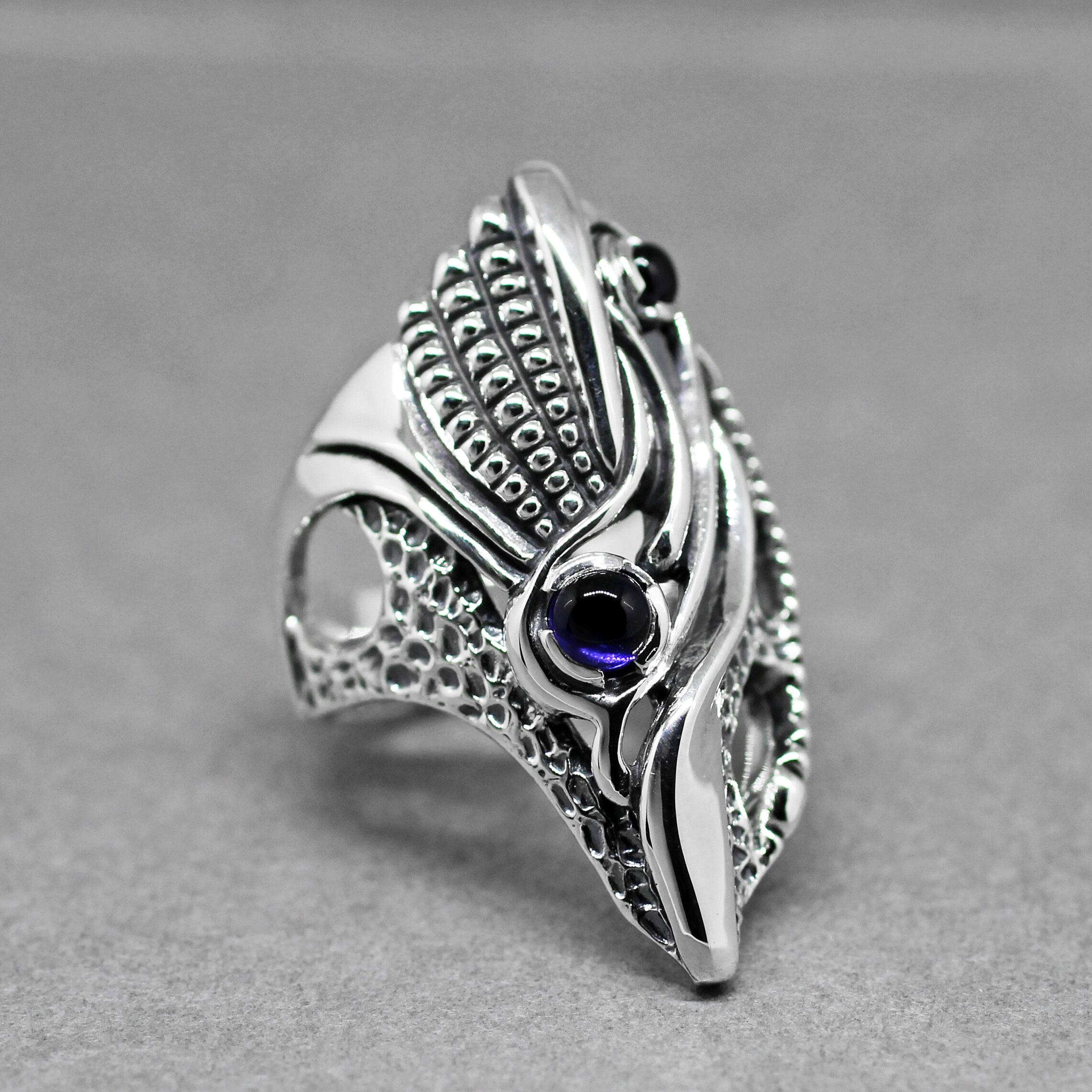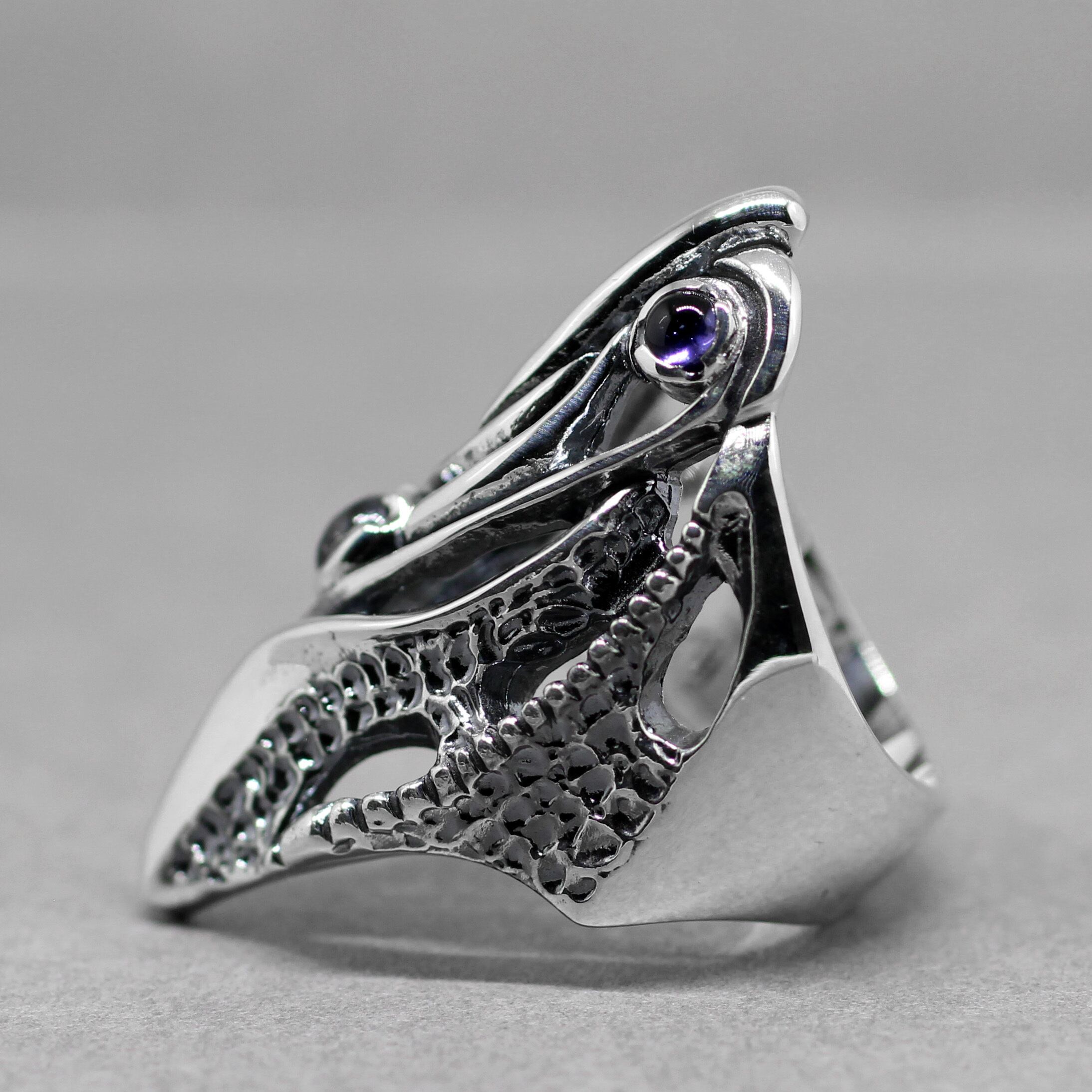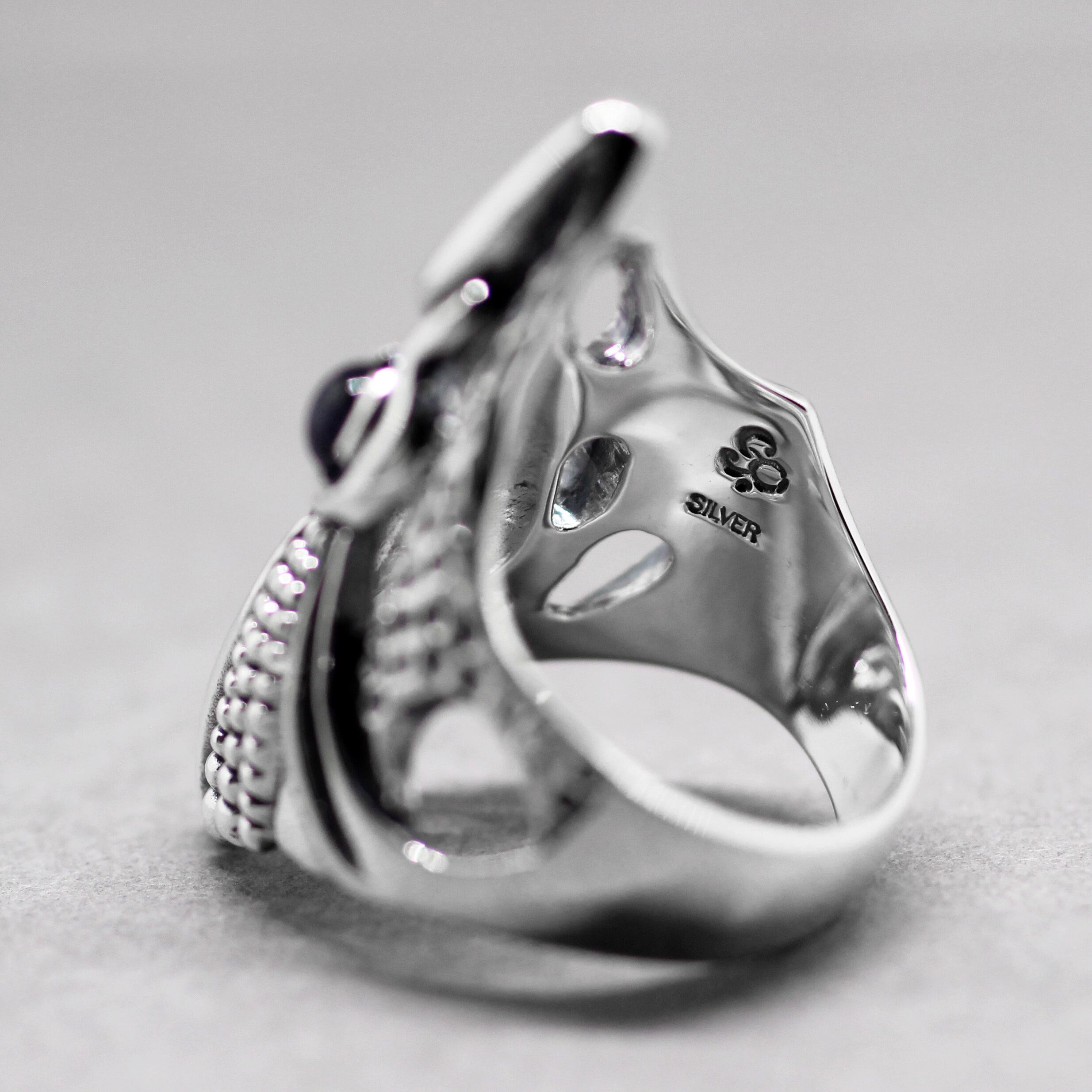 大小のアイオライトをセッティングしたシェルイメージのリング。
